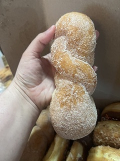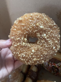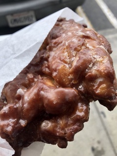 The hype is real. I have searched far and wide, this was the best apple fritter I have ever had! Crispy outside, warm and slightly gooey dough inside, not too sweet, just a hint of cinnamon